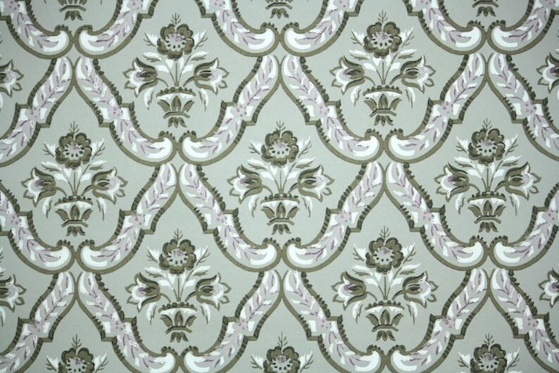 1940s Vintage Wallpaper By The Yard Gray Green And Etsy
