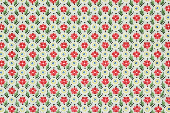 1940s Vintage Wallpaper Red And Yellow Floral Geometric On Etsy
