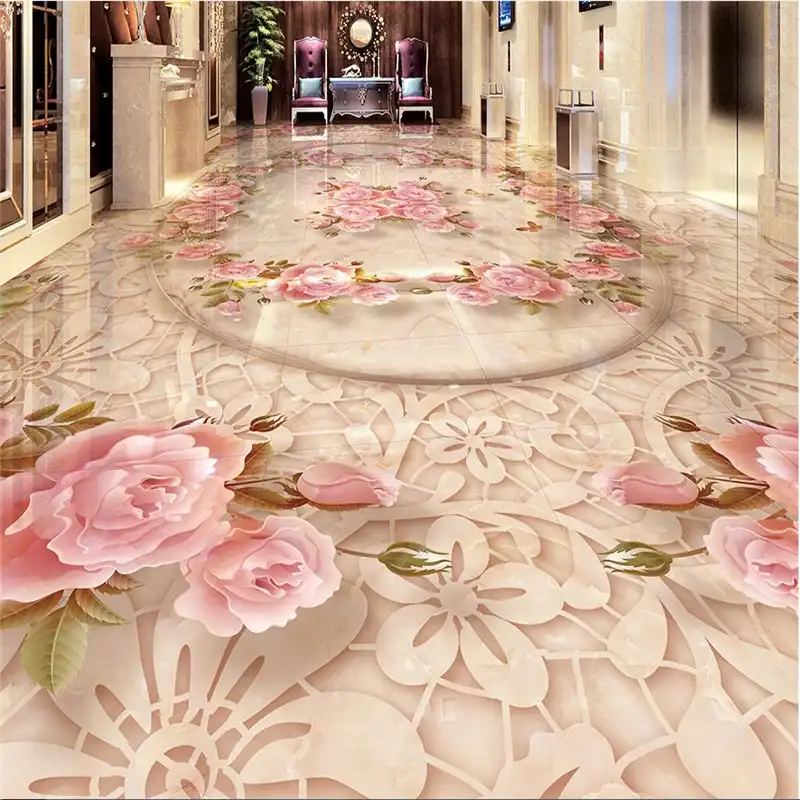 ᐂbathroom Floor Wallpaper European Rose Marble Floor 3d Flooring