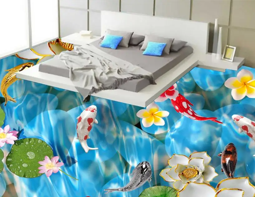 Custom 3d Floor Mural Wallpaper Swimming Goldfish Pvc Self Adhesive Wa Onshopdeal Com