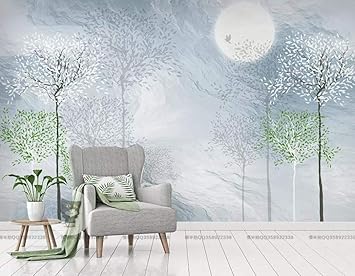 Wallpaper 3d Forest Nordic Moon Modern Living Room Bedroom Large