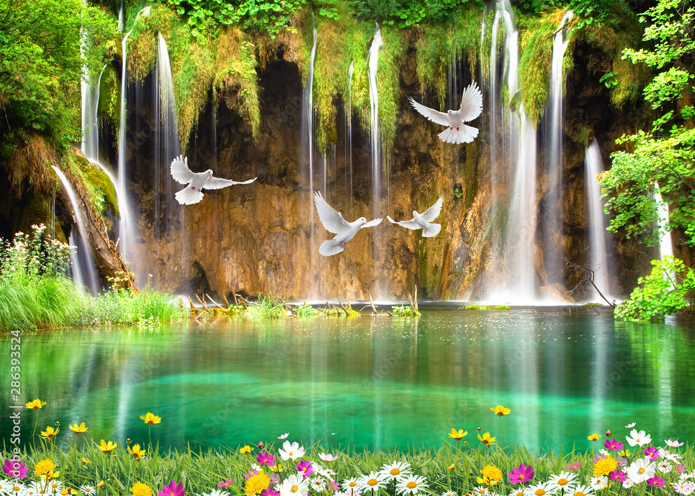 Wall Murals 3d Nature Wallpaper Background And Waterfall Sea