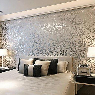 Sliver 3d Wallpaper Non Woven Matte Silver Flower Pattern Wall