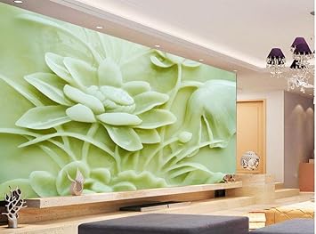 Wapel Custom 3d Wallpaper Jade Carved Lotus Relief Mural