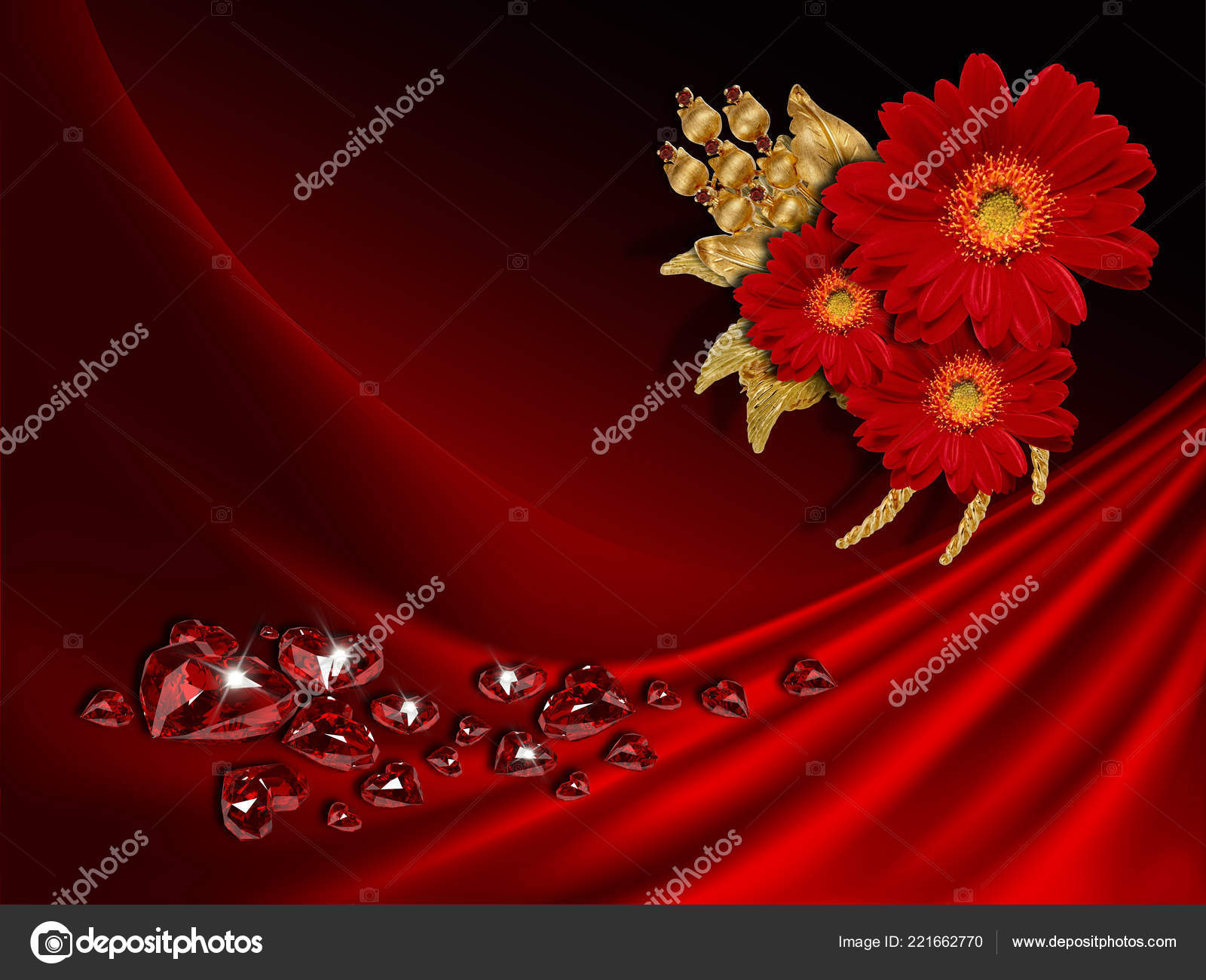 Wallpaper Gerbera Daisies Jewelry Flowers Red Silk Background