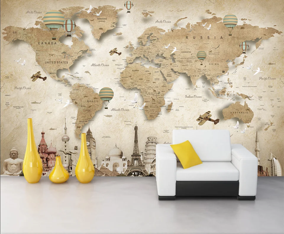 Beibehang Custom Wallpaper Cartoon World Map Tv Background Wall 3d