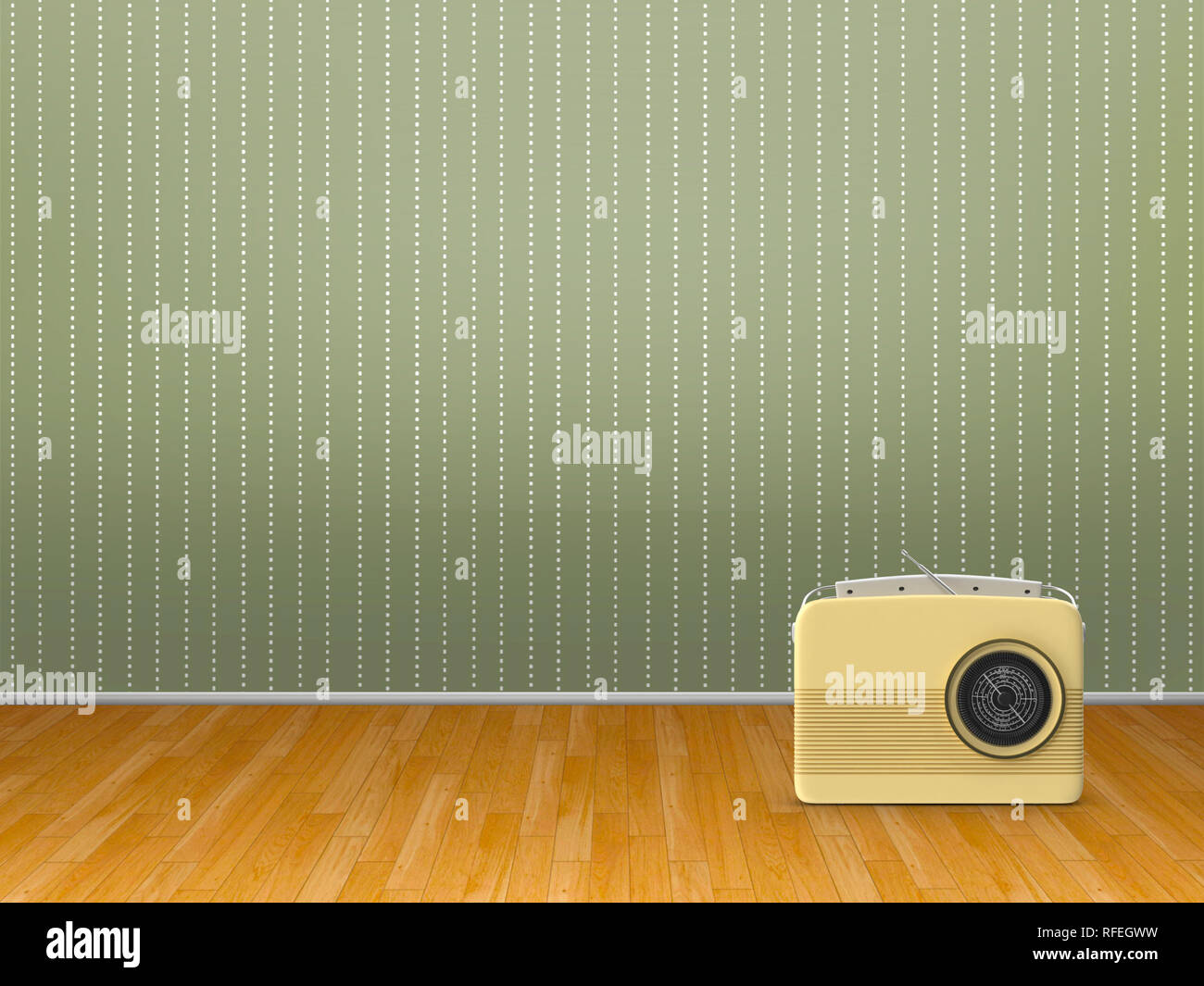 3d Illustration Rendering Of Retro Radio On Parquet Floor And