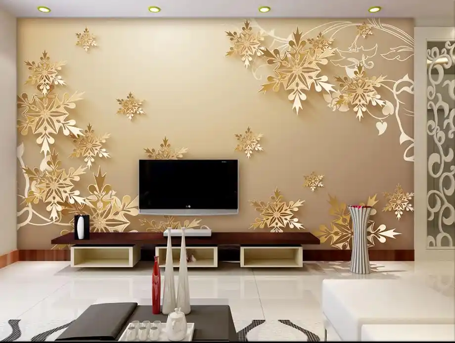 Interior Wall Decorative Golden 3d Wallpaper For Living Room
