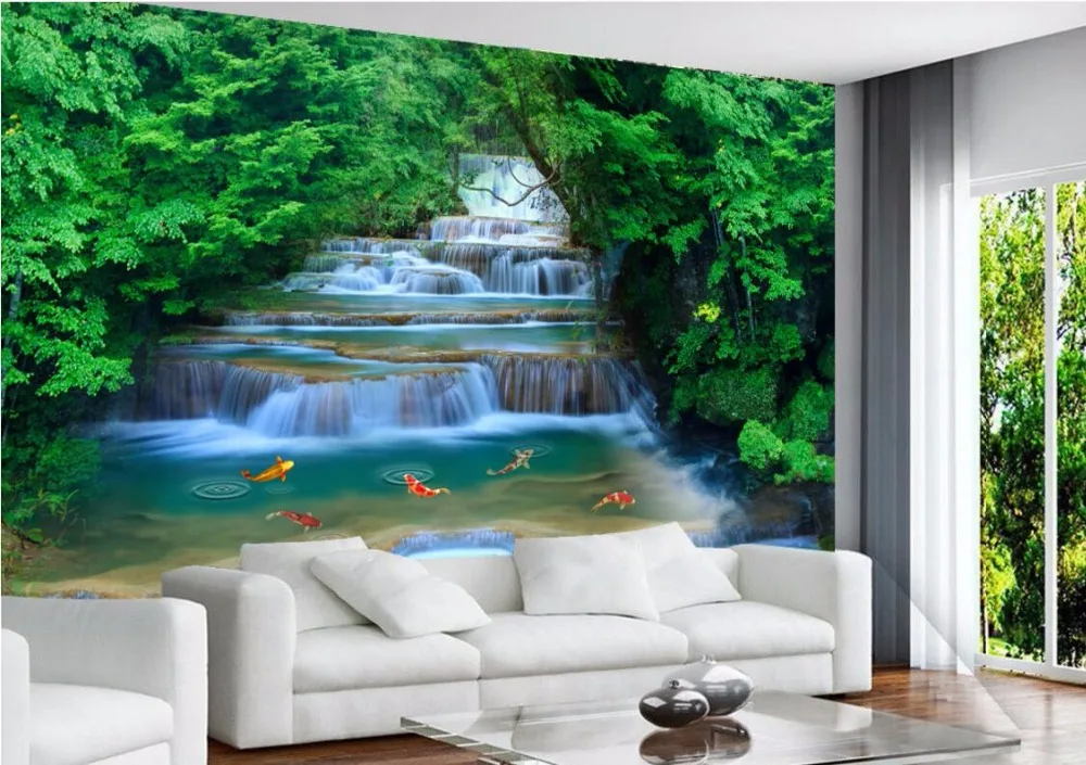 Custom 3d Wallpaper Forest Waterfall Nature Landscape Photo Wall