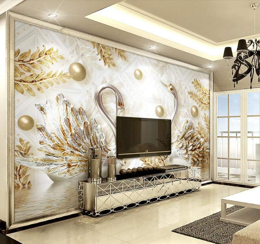 Custom 3d Wallpaper Home Decor Fresco Luxury Swan Gold Leaf Water