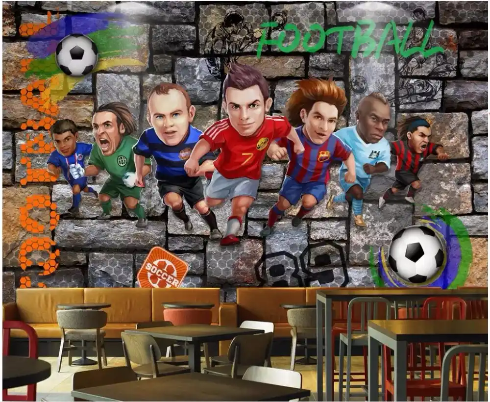 Custom Photo 3d Room Wallpaper Picture Cartoon Footballer Brick Wall Home Decoration 3d Wall Murals Wallpaper For