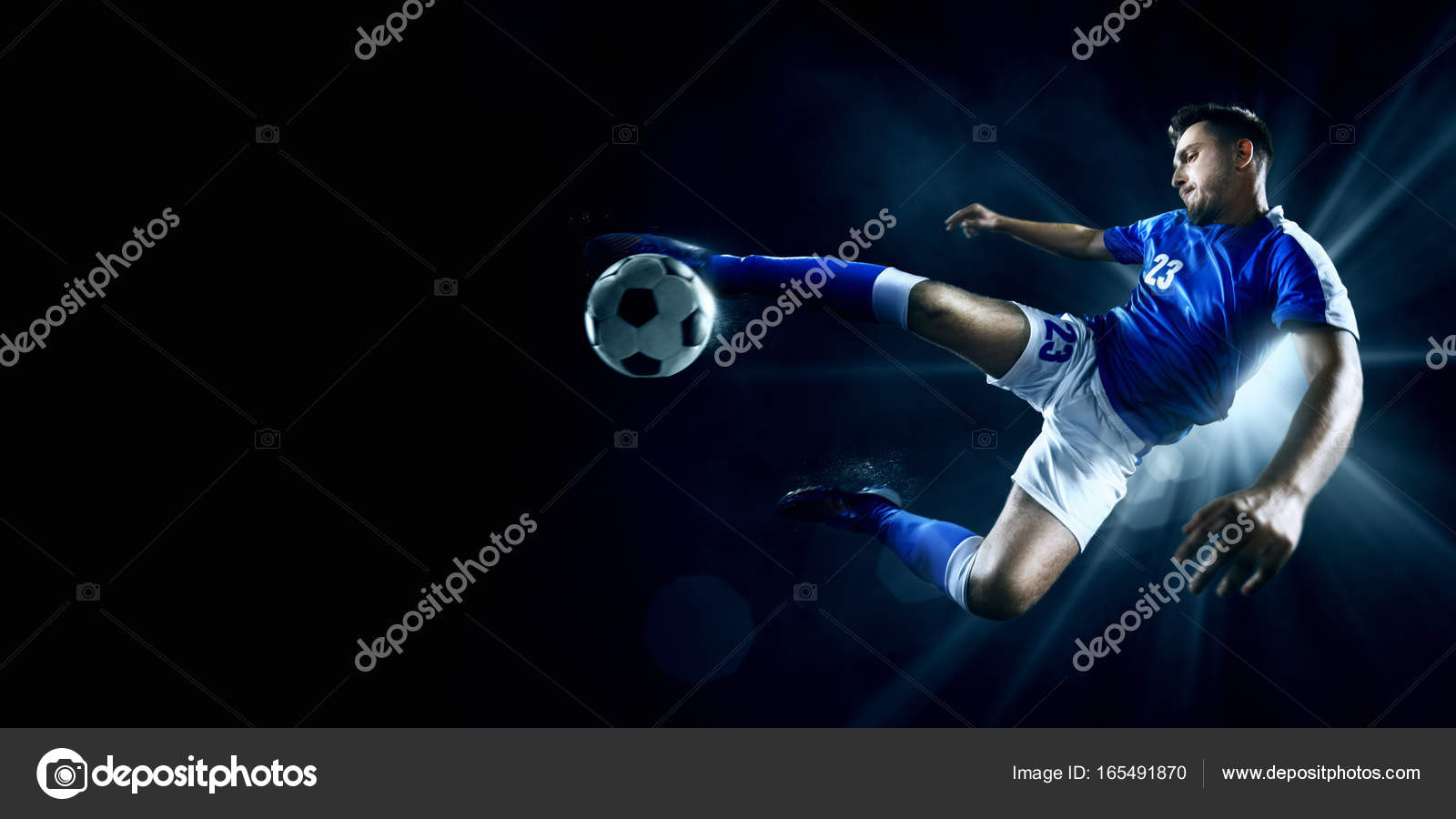 Soccer Player Performs An Action Play On A Professional Stadium Stock Photo C Alexkravtsov 165491870