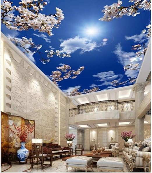 Amazon Com Mznm Custom 3d Blue Sky White Clouds Cherry Ceiling