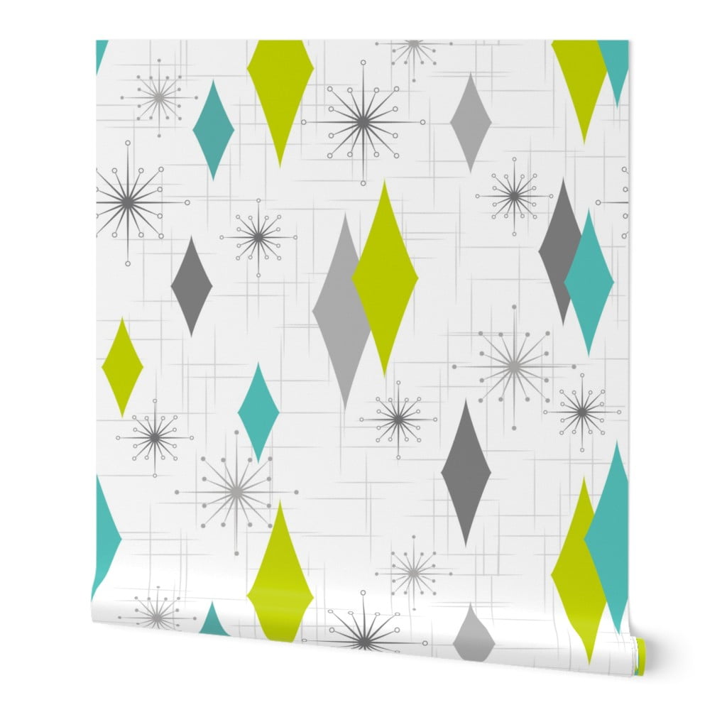 Wallpaper Roll Diamond Mid Century Modern Teal Lime 50s Retro 24in