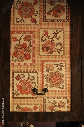 Genuine Vintage Retro Wallpaper Set Into Kitchen Doors In An Old