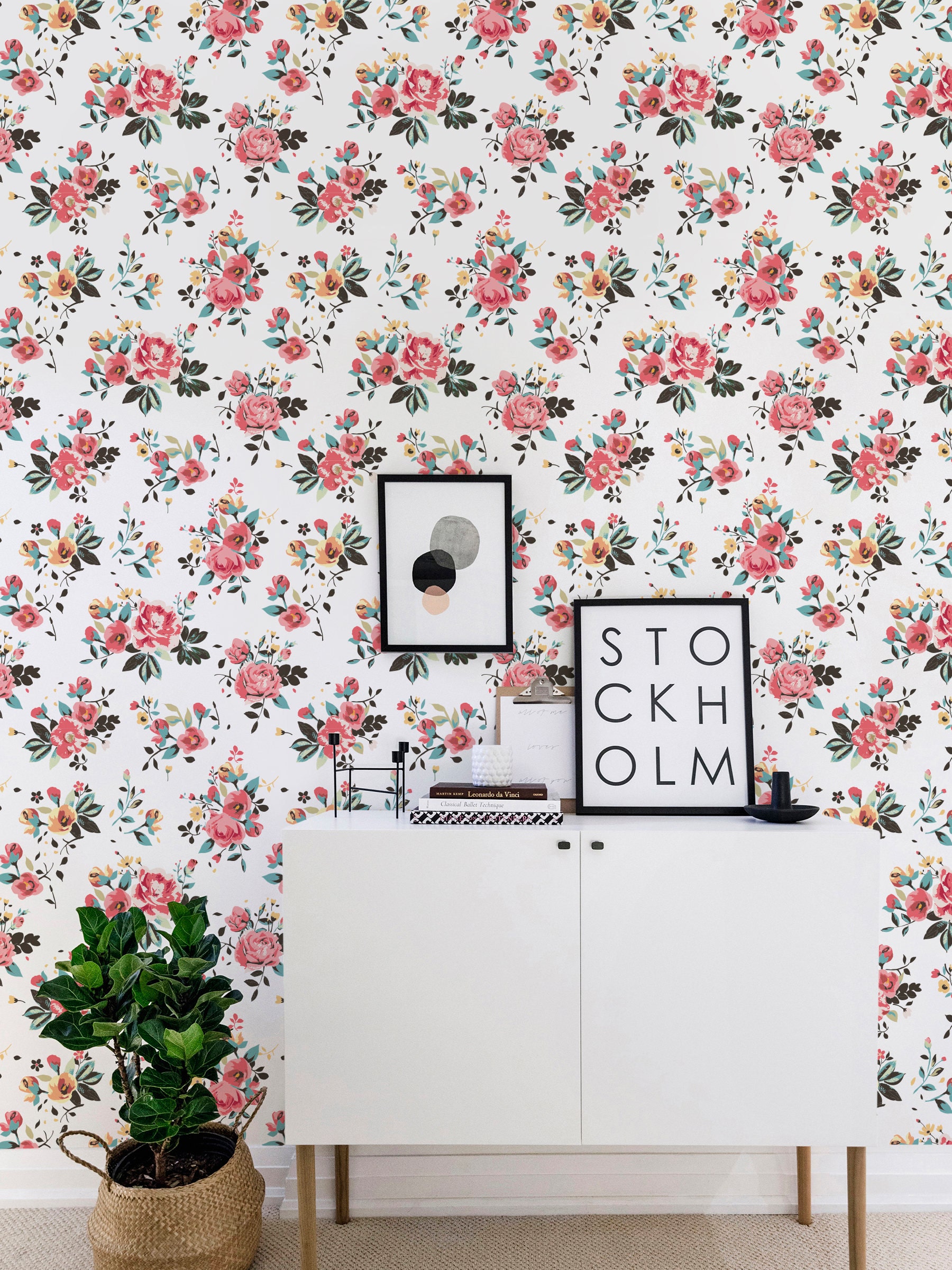 Floral Self Adhesive Vinyl Wallpaper Flower Pattern Print Etsy