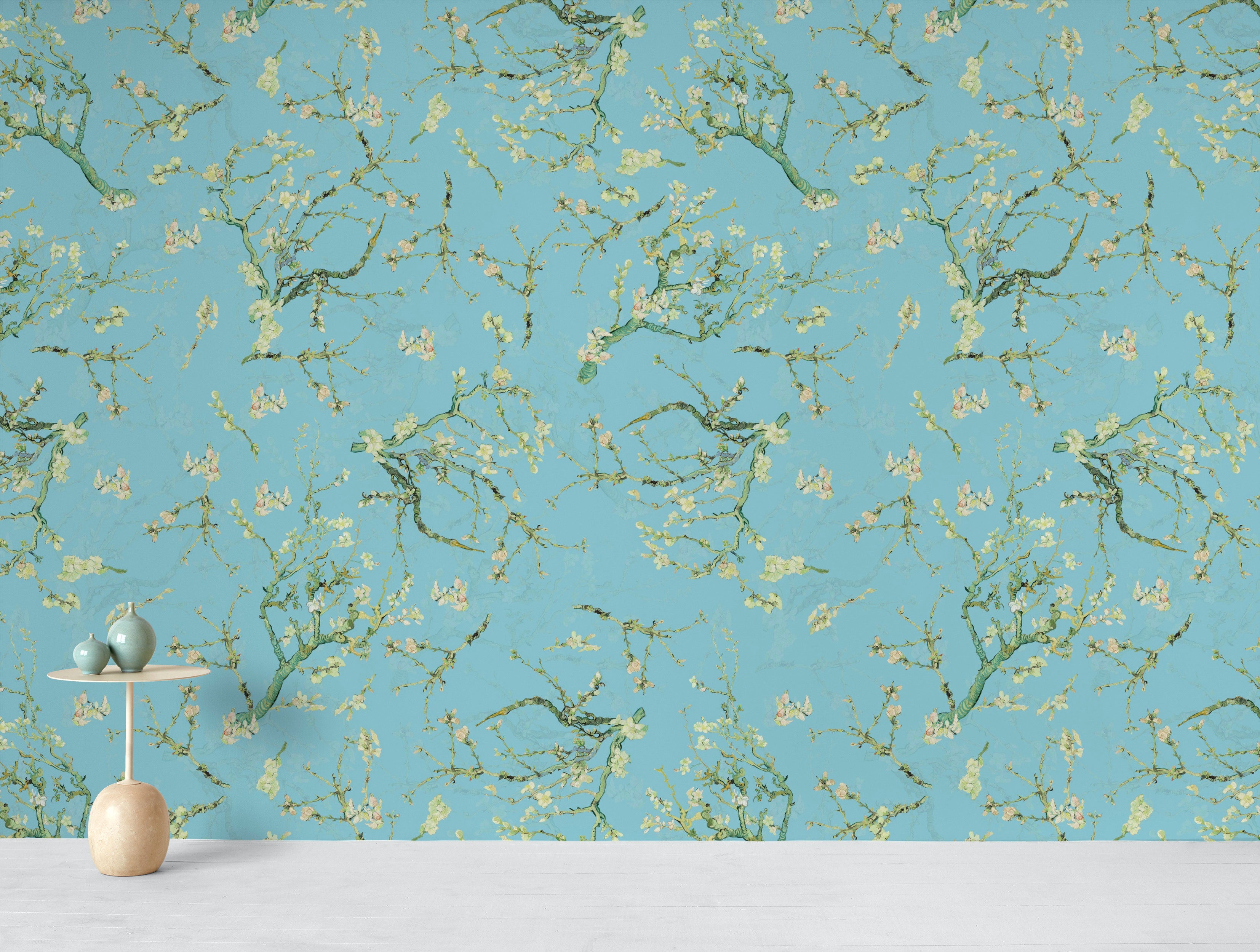 Almond Blossom Wallpaper In Turquoise From The Van Gogh Collection