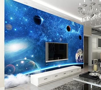 Amazon Com Space Star Tv Background Wall Blue Planet 3d Wallpaper