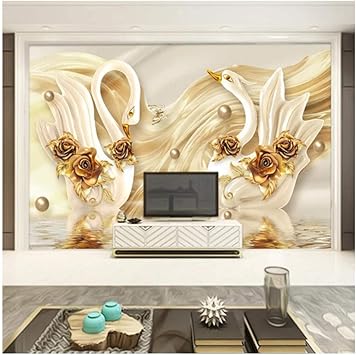 Amazon Com Xbwy 3d Wallpaper Luxury Golden Swan Rose Flowers