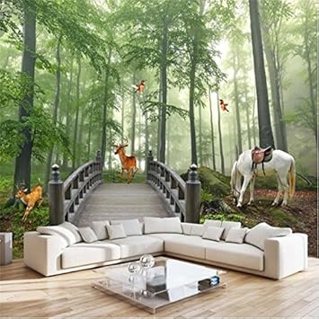 Wapel Custom Photo Wallpaper 3d Mural Landscape Trees Forest Horse