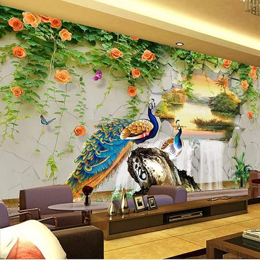 Amazon Com Xbwy Custom Photo Wallpaper 3d Stereo Peacock Pastoral