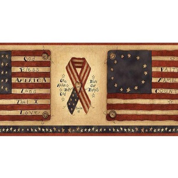 Amazon Com Flags And Ribbons Americana Wallpaper Border Home