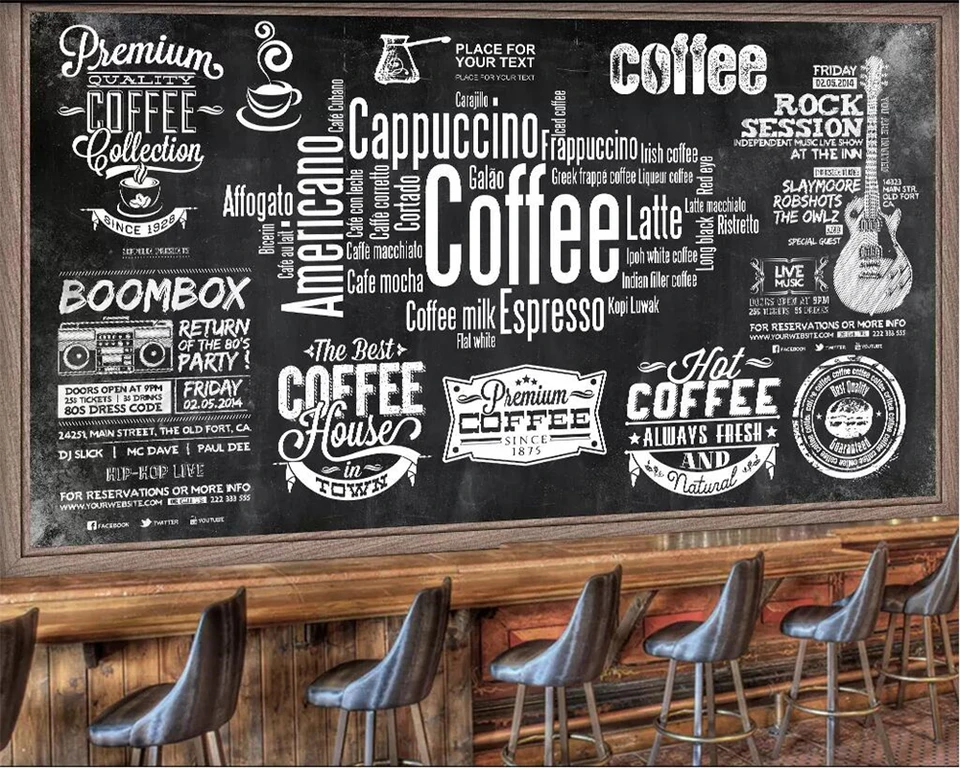 Beibehang Custom Wallpaper European Chalkboard Newspaper Cafe