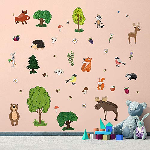 Waliicorners Nordic Style Forest Animal Wall Decals Woodland