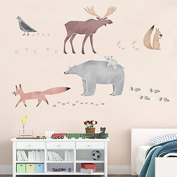 Amazon Com Ufengke Watercolor Animals Wall Stickers Bear Deer