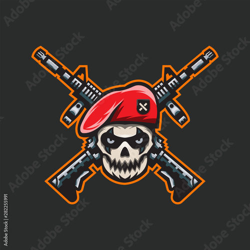 Skull Army Major Military With Gun Mascot Logo Concept Vector