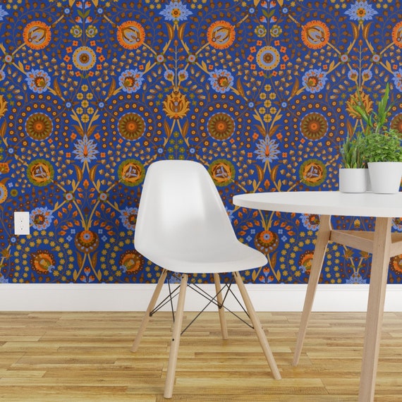 Gothic Medallions Blue Peel And Stick Removable Wallpaper Etsy