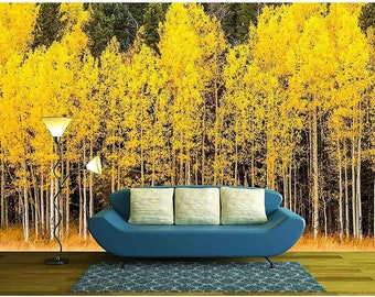 Autumn Colorful Yellow Aspen Trees Wall Mural Wallsauce Us