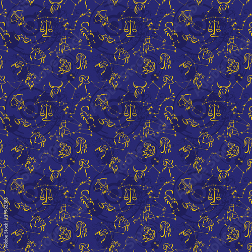 Zodiac Signs Seamless Pattern Horoscope Magic Symbols Background