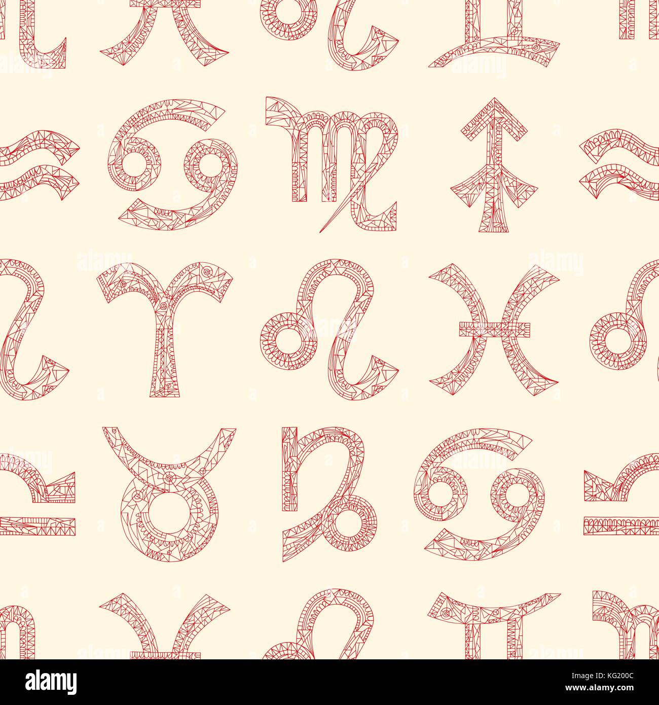 Zodiac Signs Seamless Pattern Horoscope Magic Symbols Red Stock