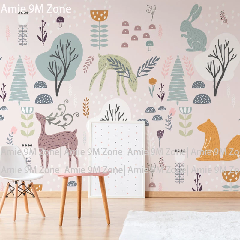 Light Cream Background Cartoon Design Zoon Animals Trees