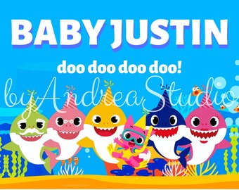 Baby Shark Theme Printable Backdrop Banner Custom Photo Shark