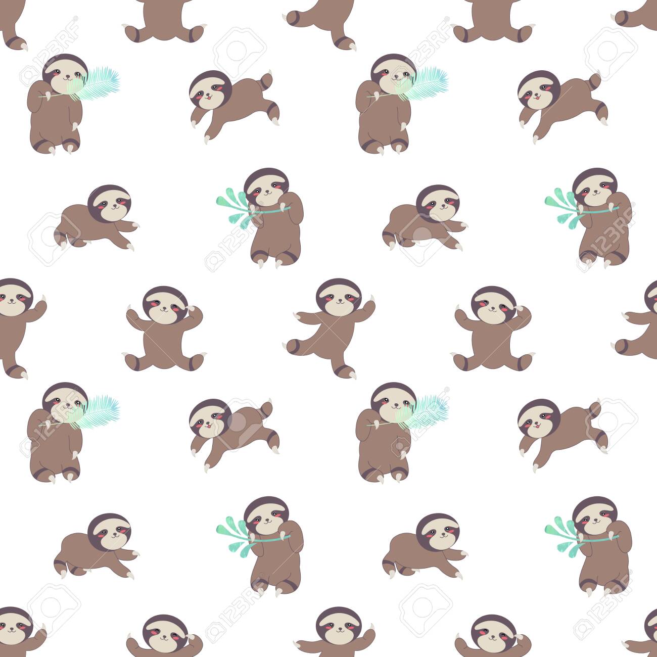 Cute Baby Sloths Seamless Pattern In A Cartoon Style On A White