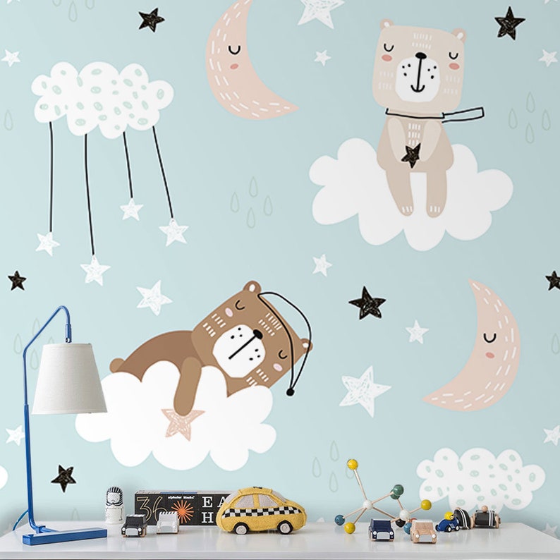 Wallpaper Photo Wallpaper Nursery Baby Room Clouds Bears Etsy