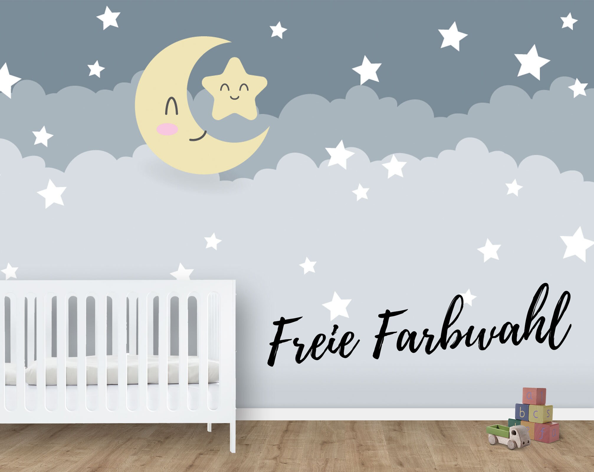 Wallpaper Photo Wallpaper Nursery Clouds Baby Moon Etsy