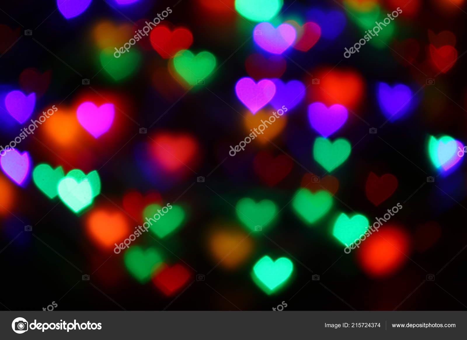 Valentines Colorful Heart Shaped Bokeh Black Background Lighting