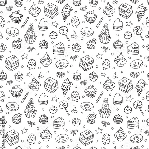 Vector Doodle Seamless Pattern With Bake And Sweets Texture For