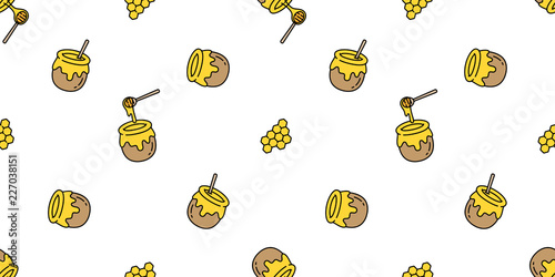 Honey Seamless Pattern Vector Bear Bee Polar Bear Bakery Bake Jam