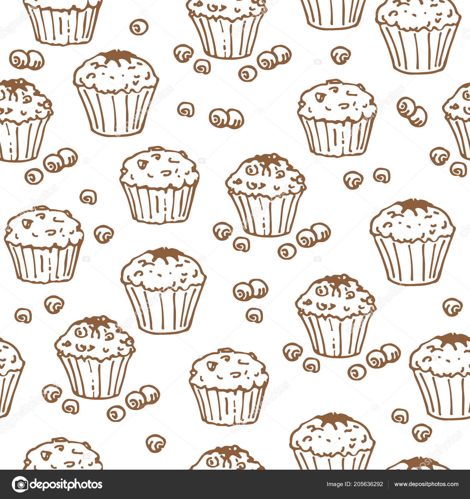 Muffins White Background Seamless Pattern Textile Prints Gift Wrap