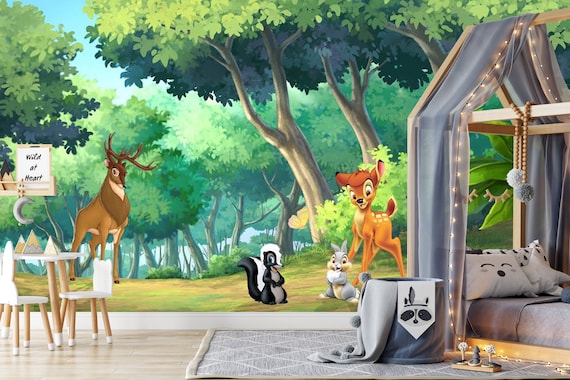 Bambi Wall Mural Bambi Wallpaper Forest Wallpaper Deer And Etsy