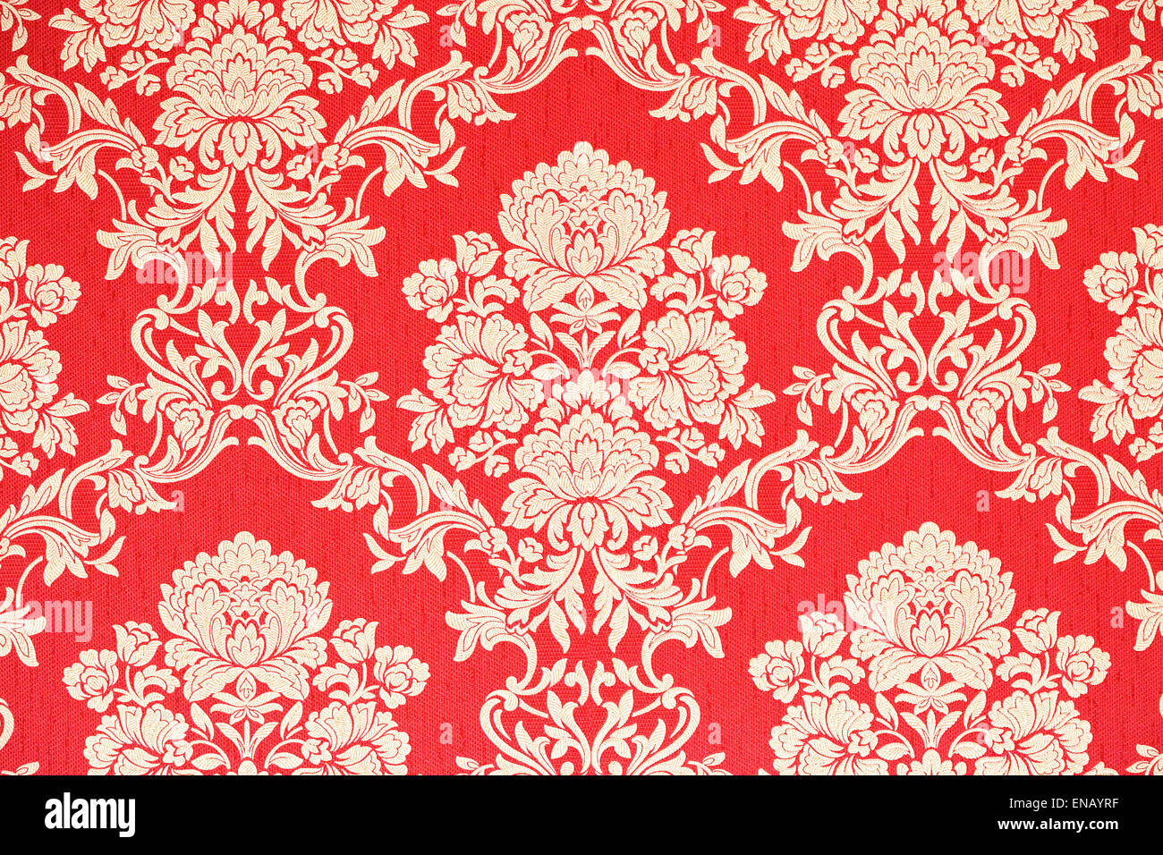 Red And Golden Baroque Wallpaper With Floral Ornaments Stock Photo