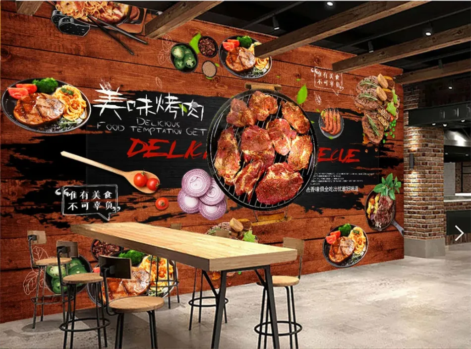 Retro Korean Barbecue Dark Brown Wood Plank Background Wallpaper