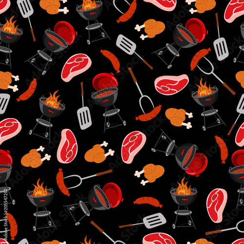 Bbq Vector Seamless Pattern On A Black Background For Wallpaper