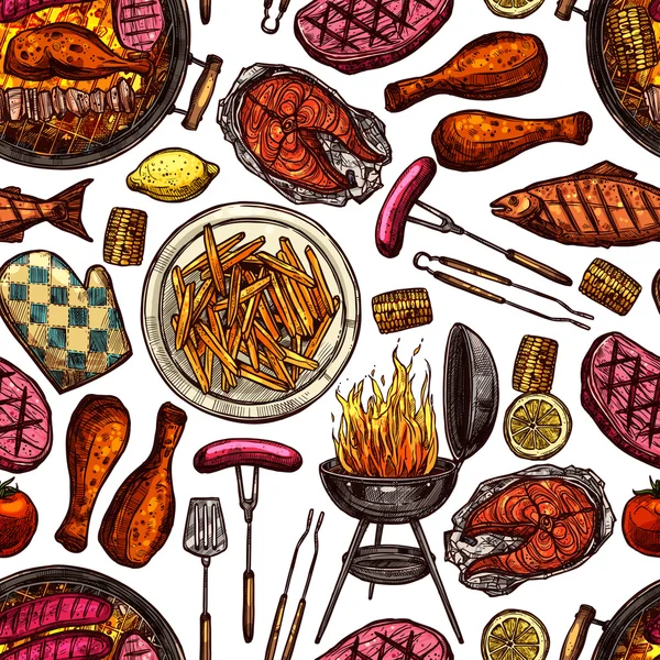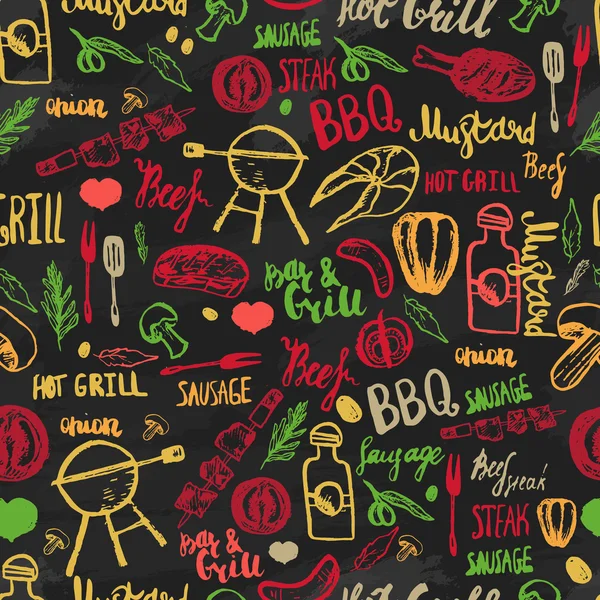 Bbq Barbecue Grill Doodle Seamless Pattern Colorful Bbq Design