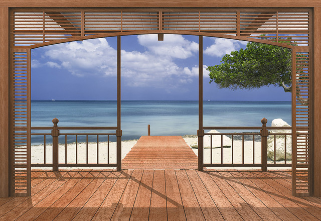 Tropical Beach House Mural Wallpaper Wallpaper By American Wallpaper Design