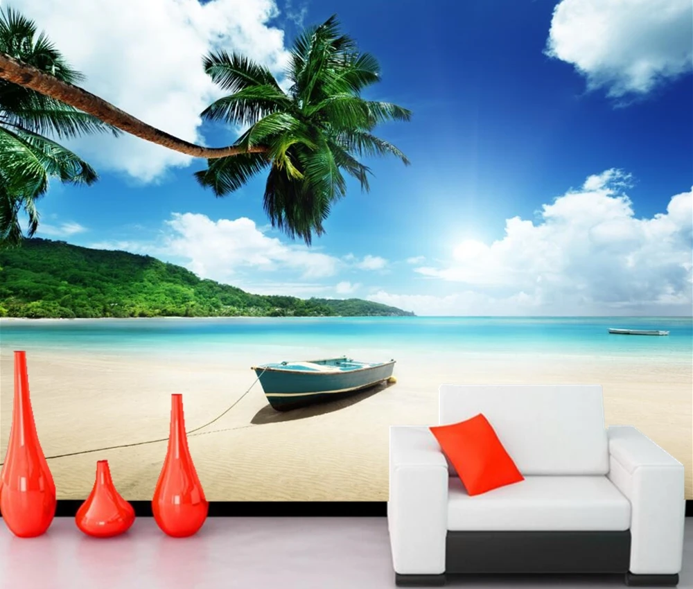 Papel De Parede Boats Tropics Sky Beach Nature Photo Palm Trees Wallpaper Living Room Sofa Tv Wall Bedroom Custom Murals Custom Mural Palm Tree Wallpaperpapel De